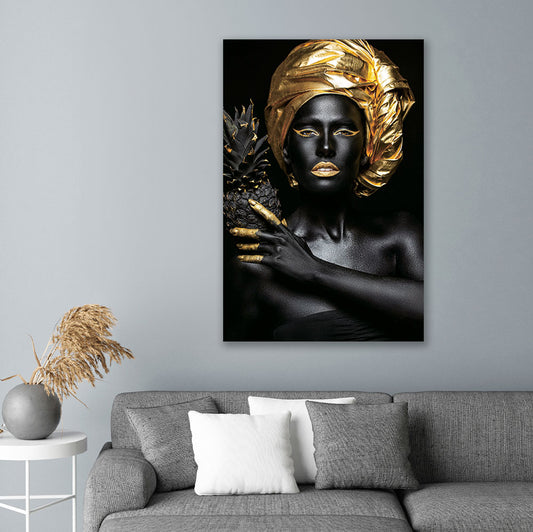 Black and Gold Tulband | Glasplaat | 80 x 120 cm