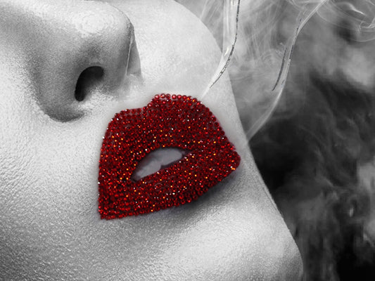 Beauty Smoking Red Lips | Glasplaat | 80 x 120 cm